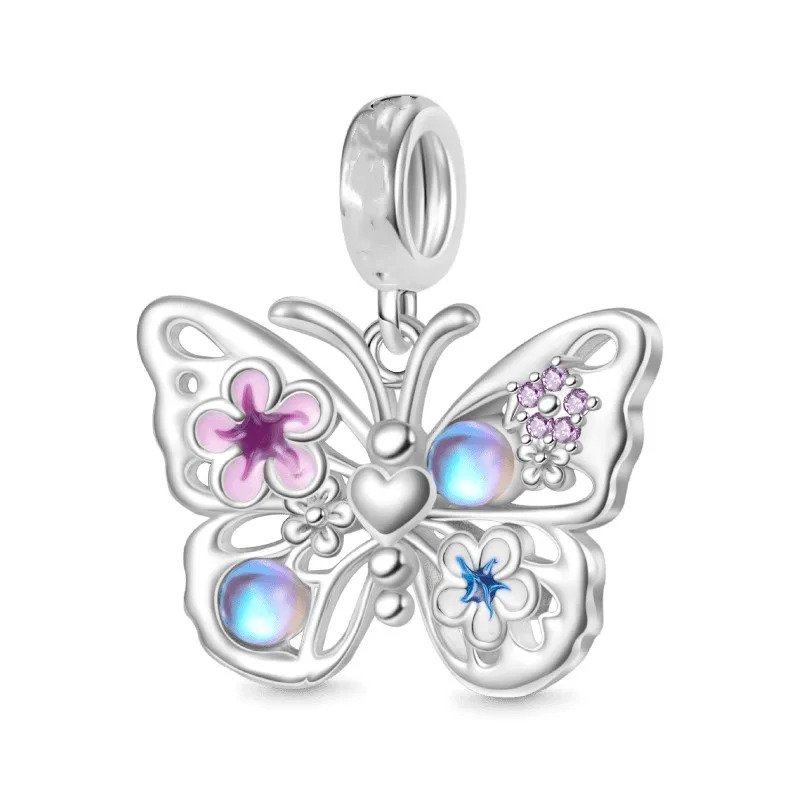 Be the first to review “Silver White and Pink Flowers Prismatic Pearl Butterfly Nature Charm”