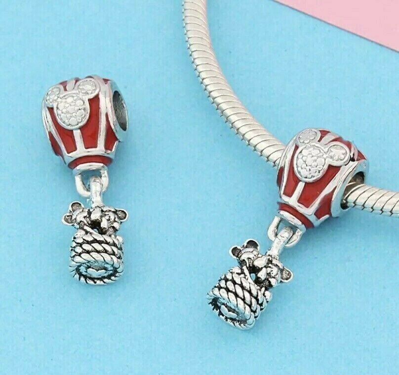 Silver Red Hot Air Balloon Mickey Minnie Mouse Disney Charm